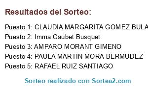 Añadido por nmartinez@sfera.es: El jueves 02 de enero de 2020 a las 10:57Resultados del sorteo: