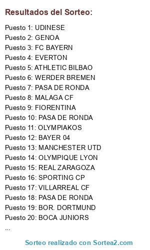 Resultados del sorteo: