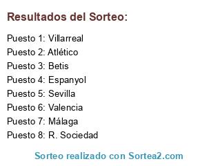 Lista de participantes: Valencia, Sevilla, Espanyol, Málaga, Betis, R. Sociedad, Villarreal, Atlético.