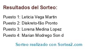 Lista de participantes: Maria Ardevinez Mont, M Del Mar Córdoba oo, Ingrid Hurtado Aguil, Asunción García Sánc, Malena Rodriguez Yo, Pilar Mendez Me enca, María Luz García Mui, Antonia Leo Munoz A, Lorena Medina Lopez, Mercedes Corcobado S, Nelly Grünangerl me, Noelia Rodriguez Oli, Marina Alonso Álvare, Zulema Pontes Vidal, Speranza Davico make, Javier Gonzalez a ve, Mónica Herrerías que, Reyes Puyuelo Una co, Maribel Vazquez Gall, Edeleine Lopez por d, Arancha Cervera Estr, Rosana Garrido Sánch, Patri Yulian Rock Me, Buscadora de Nada Me, Sandra Mendez Gonzal, Sofía Sánchez Garrid, Ignacio Sánchez Garr, Fancisco Sánchez Pay, Camino Maseda super, Maria Jesus Moreno T, Patricia Mecerreyes, Ele Torrent me encan, Jose Miguel Illan Ro, Ana Isabel Oreja Gue, Sara Genicio suerte, Eva Garcia Ya tengo, Laura Martinez Jajaa, Gemma Bogas Están ch, Consuelo Salinas Pac, Ana Martinez Me enca, Marian Modrego Son d, Rosi Naranjo Ortega, Toñi Punzano Tamargo, Emilia Pilar Rodrigu, Diskreto-fão Pronto, Eva Andrés Holgado M, Marta Cabezas Arias, Mariquita Perez yo q, Maria Jose Tomas Hid, Mª Carmen Martinez N, María Lapaz ¡¡¡¡Ohhh, Ana Serrano Fernande, Alicia Pozo García Q, Manuela Fernandez Me, Carolina Pozo García, Leticia Vega Martin, Leilia Pv Qué chulas, Maria Luisa Jaramill, Josefina Martinez Yu, Viajera del Viento t, Merche Vila Cuquerel, Estibaliz Bengoa Lar, Conchi Fernandez Ana, Elvira Lahoz Cortes, Little Pokigirl ¡Me, Mónica Pac Me gusta, Cristina Martínez Ji, Arantxa Sanchez Colm, Veronica Mesas Pascu, Ana Belen Haro apunt, Gloria Iglesias prec.