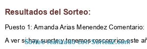 - Ganador: Amanda Arias Menendez Comentario: Nuria Arias Menéndez Susana Friera Pando A ver si hay suerte y tenemos roscon rico este año