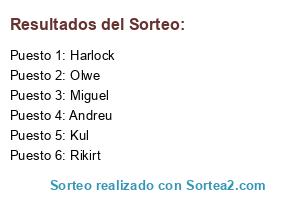 Lista de participantes: Olwe, Kul, Miguel, Harlock, Rikirt, Andreu.