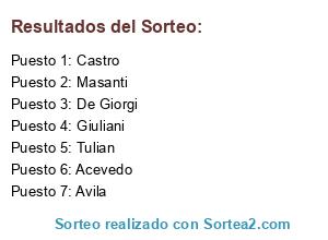 Lista de participantes: Masanti, Acevedo, Castro, De Giorgi, Tulian, Giuliani, Avila.