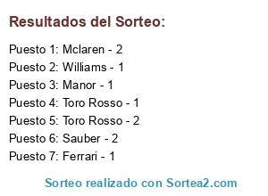 Resultados del sorteo: