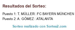 Lista de participantes: T. MÜLLER FC BAYERN MÜNCHEN, A. GÓMEZ ATALANTA.
