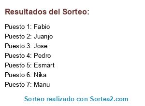Resultados del sorteo: