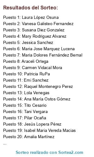 Lista de participantes: Rosa Sevilla, Ivan Perez Montes, Maria Chaves, Cristina Rodriguez, Rocio Extremera Cobo, Agus Aguilera Polo, Sara Cobo Bermúdez, Inma Pulido, Ara Carreira, Candy Jurado Pulido, Maria Jesus Galisteo Quesada, Manuel Fuentes Jiménez, Beatriz Castillo, Cristina Pareja Serrano, Fernando Torres, Sole Molero Rodríguez, Maria Jose Leon Franco, Raquel De La Rosa, Araceli Perez Cordoba, Ester Gómez, Rosa Ortiz Carvajal, Ana Espinar, Carmen Guerrero, Dolores Rodriguez Valenzuela, Eli Sanz, Rosa Maria Coria Martinez, Carmen Rosado Calderon, Maria Del Carmen Alberto Rios, Carmen Amador Galiano, Marga Fernández, María Sánchez Pérez, Maria Mendoza Caballero, Antonia Sosa Fernandez, Soledad Orellana Muñoz, MamenyJuana García Sánchez, Ana Torres, Carmen Santos, Olga Lechon Gomez, Beatriz Baltanas Marmol, Paqui Illescas Muňoz, Ampi Rodriguez, Kiko Garcia, Manoli Sánchez Leal, Miryam Fernandez Julian, Pilar Hurtado Vera, Gertrudis Ramos Piñero, Susana López Cuevas, Rosario Ayuso, Montse Vázquez, Lola Millán, Gloria Ruiz, Manuel Sánchez Sánchez, Maria Antonia Sanchez Pacheco, Maria Infante Ortiz, Juani Parrado Gonzalez, Silvia Gutierrez Perez, Inma Alcaraz Jimenez, Lucía Linares Campillos, Carmen Maria Garcia Ramirez, Paqui Romano Cano, Pilar Boto Lobo, Ángela Cabañas Montes, Carmen Guardeño Navarro, Teresa Benavides Arias, Vanesa Plaza, Maruchi Mar, Paqui Fernández Melara, Jessica Ramirez, Marga Jimenez, Manola Diente, Lydia Moreno, Patricia Rico Garcia, Araceli Rodriguez Valenzuela, Josefa Sierra Santos, Felisa Fernandez Melara, Inmaculada Cabrera Sanchez, Maria Jesus Garcia Estevez, Jesus Jimenez, Mayka Espada, Maricarmen Sans Miralles, Ruma Pacheco, Isabel Parrado, Inma Bonilla, Loli Perez Roman, Araceli Rojas Jimenez, Gema Montoro Leon, Laura Carrasco Martínez, Soledad Moral Montoro, Carmen Avesada Herrera, Vero Córdoba, Angharad Rodriguez Medina, Lola Rodriguez Orellana, Isabel Marin, Victoria Perez Cabello, Yolanda Contreras, Carlos Garcia Gonzalez, Carmen Rodriguez 1, Conchi Zambrano, Maria Jesus Capote Cubero, Carmen Montes Henares, Sebastian Gutierrez, Carmen Luque 2, Blanca Meira, Mari Carmen Perez Sanchez, Araceli Lopez, Araceli Muñoz Chicano, Angela Bonilla Bonilla, Maria Araceli Maillo Romero, Mariana Iuliana Opris, Yuli Cica, Araceli Muñoz 1, Trinidad Cubero, Tamy Pakemas, Loli Rodriguez, Mariangeles González Gonzalez, Mary Rodriguez Alvarez, Olga Cubero Muñoz, Rebeca Maza Zarate, Ana Belleda Álvarez Montero, Melania Fernandez Vivero, Vanessa Arnaiz Zubillaga, Eusebia Castro González, Carlos Mun Mon, Mar Matallanas, Cabezas Llera J Carlos, Felipe Miguel Lavado Gragera, PaaulaaDaniilo Atiiketeimporta, Isabel Duran Guerrero, Pilar Brea, Brigi Sanchez Pascual, Bea Gan, Maria Custodio, Angela Alguacil Lama, Tere Villar Nogueira, Carmen Algar Cobo, Carmen Flores Urbano, Maria Jesús Muñoz Arjona, Le Ver Vert, Vicky Rajado Rajado, Tere Gutiérrez Martinez, Ana Maria Paniagua, Rosalia Galiano, Lola Miranda Crespin, Carmen Cuellar Ramos, Ignacia Alvaredo, Edita Franco García, Patricia Ruiz Garcia, Tamara Tamara Labradordelgado, Juani Ardila Galan, Nati Sanchez, Feliciana Moya Sanchez, Jennifer Maldonado, Marilo Sanchez Agreda, Ana Trufula, Mjose Bonilla, Felisa Naranjo German, Carmen Vázquez González, Rosi Rocha Enrique, Se Martinez Sanchez, Maria Del Carmen Rey Ropero, Teo Sanchez, Ana Vazquez Marchena, Ana Blaya, Sandra Diaz Lorente, Yolanda Alberto, Blasi Ortega, Mercy Jose Ortiz Soto, Serafina Jiménez, Ana Maria Contreras Carmona, Laura Egea Martinez, Alejandra Piñero Tamudo, Araceli Aranda 1, Paqui Fernandez Valenzuela, Monica Bautista, Pilar Albalat Carmona, Gema Fernández Alcalde, Trini Villalon Montero, María Fatima Verá Martínez, Ana Moreno Galán, Pilar Gradit, Ana Maria Leyton Ruiz, Debora Iturbide, Inma Fernandez, Sofia Martin Ruiz, Rosana Sanchez Gamero, Miriam Garcia, Pilar Gutierrez Urdiales, Esme Marquez Muñino, Antoñi Acero Ojeda, Inma Campos, Maria López, Consuelo Muñoz Hoyos, Merchi Cabello, Verónica Bordetas Agudo, Virginia Roman Castro, Antonia Reinoso Hermosa, Carmen Moreno Fernandez, Isa Rodriguez Martin, Encarni Estévez, Mari Carmen Cortes Roman, Beatriz Rodriguez, Antonia Lopez Escalante, Manoli Moreno Pozo, Paula Guerrero Vizcano, Toñi Arroyo Oteros, Saray Rey Rodriguez, Pilar Alberto, Marije Delgado, Martina Algar Jimenez, Rosa Algaba-gomez, Laura Bustos Muñoz, Encarni Caballero García, Tania Franco Martin, Agueda Ramos Alvarez, Juani Parejo Tapia, M Carmen Matilla, Manuel Jesús Muriel Fernandez, Paqui Tena Casado, Valentina Gomez Davila, Rocio Reinoso Vaquerizo, Montse Lm, Juanjo Castro, Monica Mony, Mar Mero, María José Sánchez Gallardo, Maria Fuentes Lopez, Maria Lucia Siles, Inés Barquero de la Cruz, Ana Belen Delgado Garcia, Montserrat Maya Diaz, Mari Arcos Lavela, Teresa Arcos, Candi Rico Barco, Milagro Roman Castro, Maria Reina, Toni Inmonova, Esther Rico Garcia, Manoli Serena Juarez, Pepa Gutierrez Medina, Auxiliadora Diaz, Teresa Infantes Galan, Eva Maria Moscoso, Teresa Aunion, Cecilia Fernandez, Araceli Pineda Alba, Juani Cadenas Guerra, Sonia Martinez Garcia, Eva Aguilera, Rafaela Pineda Hurtado, Andrea Carretero Gonzalez, Carmen Rajado Tejado, Sonia Sandoval Garcia, Lysa Moon, Lourdes Alvarado Valenzuela, Isabel Gutierrez Duran, Rosa Ruiz, Silvia Del Puerto Marín, Belén Pino Luengo, Lourdes Lopez, Isabel Cornejo, Patricia Amador, Bienve Roman Castro, Aurora Casado Jimenez, Encarni Buenobueno, Eguzkiñe Ramos, Josefa Fernández Carrasco, Meli Alvarez Llanes, Nieves Mancera, Marisa Gonzalez Godoy, Sandra Barranco Rodriguez, Vanesa Encabo, Concha Gómez González-Castell, Juani Antolin del Viejo, Lupe Rosa Garcia, Marta Garcia, Luisa Aunion Acevedo, Toñi Llanes, Estefania Roman, Isabel Garrido Almendro, Mari Fernández Cabañas, Susana Moreno Aunión, María Jose Romano Rodríguez, Olga Ibañez, Carmen Iglesias Aguilera, Obdulia Cala, Paqui Sevilla Castellano, Veronica Garcia Medran