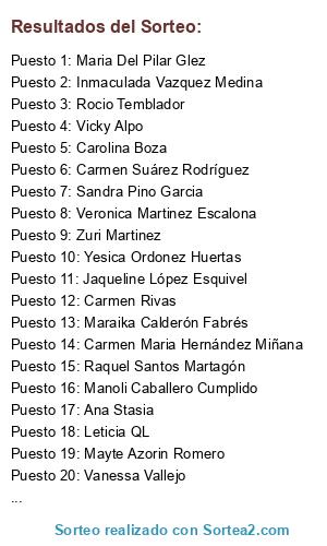 Lista de participantes: Ana Padilla, Melody Carrasco, Alba Giraldo Nogueiras, Eva Diaz Costa, Azulema Gutiérrez González, Cristina Alonso González, Tere Neto Barrio, Fatima Ferrero Garcia, Sonia Martagon Gonzalez, Lorena Navarro Garcia, Gema Perez, Sandra Pino Garcia, Laura Pino, Maria Del Pilar Glez, DeborahyAbraham Rodriguez, Ana Lopez, Alicia Diaz, Eva Fernandez Sanz, Carmen Lucia Martin Sosa, Ana Faneca Ponce, Caren Reina, Carmen Jeannette Sanchez, Mary Flores Romero, Clara Melero Martin, Almudena Mestre Rodriguez, Lorena Cabrera Mena, Mariangeles Solana Criado, Mari Paz Arcedo Rabaneda, Carolina Boza, Noelia Diaz Correa, Lara Geminis, Bina Martínez, Jose Moneo Huete, Marian Moneo, Inmaculada Vazquez Medina, Yolanda Alonso Gallardo, Noelia Marco Burgos, Melody Reyes Cordero, Juanessa Rodoncio, Lili Delgado Martin, Jaqueline López Esquivel, Yoli Garcia Mairena, Isabel Maria Ávalos Guerrero, Neiva Pereda Casado, Diana Hernandez, Sara Herrera Pazos, Raquel Aguaded Contreras, Lurdes Gil Romero, Raquel Chamorro Iglesias, Teresa Mateo López, Enei Roncero Escondrillas, Ana Marquez, Natalia Lopez Contreras, Adrian Hernandez, Antonia Alba Sanchez, Mari Exposito Rodriguez, Carolina Sanchez Murillo, Rosa Lopez Molina, Tamara MCh, Beatriz Moron Muriel, Rocio Lorenzo Ahufinger, Mary Fernandez Gonzalez, Miriam Rodriguez, Vanesa Correa Fernandez, Vanessa Rodriguez Perez, Lorena Gomez, Cristina Mascareńa Lozano, Benegas M Elena, Cristina Santos Gómez, Leticia QL, Ale Hop, Ana Rosa Arauz, Ruth Ibias, Silvia De La Rosa Arauz, Manoli Caballero Cumplido, Vanesa Vicente, Mayte Azorin Romero, Maria Angeles YRaul, Julia Ortiz Gutiérrez, Vane Cara, Maria José Moreno, Manuela Rocio Ramos Monaya, Manolita Garrido Cazorla, Nieves Martinez Miguel, Yoli Rodriguez Prada, Jenny Ladecasa Ladesiempre, Maria Jose Gonzalez Gomez, Sandra Belizon, Zuri Martinez, Eva Martínez Alonso, Itxaso Calvo, Rosa Martí Pallarés, Maraika Calderón Fabrés, Ricky Rubira Bilbao, Raquel Mezquita Salvador, Soledad Herrera Gonzalez, Isabel Muñoz Jaime, Fali Gomez Martin, Conchi Li, Jeni de los Rios, Sara Trisol Segarra, Veronica Mancha Lozano, Raquel Santos Martagón, Tania Lopez Flores, Estefania Pons Campos, Isabel Romero Landero, Carmen Suárez Rodríguez, Mari Carmen Miñana Sousa, Irene Constantino Neto, Rosario Hernández Corral, Sara Aguilar Marente, Pepi Bella Gonzalez Exposito, Vanesa Rujas Martín, Marta Yoscar, Sheila Garcia Martinez, Inma Montes Barranco, Maria Teresa Romero López, Conchi Jimenez, Rocio Temblador, Mari Garnes, Rocio Ambrosio Lopez, Victoria Baz, Vicky Alpo, Veronica Bejar Jimenez, Sandra Falcon Fernandez, Raquel Pastor Pastor, Ana Bella Pereira Martin, Rocio Amores Mora, Ana Salvador Blanco, Marta Aparicio Roldan, Fani Oliveira González, Mai Gabber, Nallely Caceres Monsreal, Julia Rodriguez Maestre, Yesica Ordonez Huertas, Angela Gandul Romero, Manoli Nogales Osuna, Carmen Maria Hernández Miñana, Silvia Martinez-losa Perez, Ana Stasia, Vanessa Vallejo, Cups Closet, Ana Dolores Montalvo Giner, Rosa Maria Casas Romero, Carmen Rivas, Sonia Rios, Maria Gallardo Perales, Maria Martinez, Leticia Mestre Beas, Veronica Martinez Escalona, Raquel MaEs.