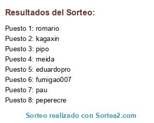Lista de participantes: kagaxin, party6boy, cadista, meida, yervisss, coke, xipi, bit, pumuky, peperecre, pau, fumigao007, chustamante, VyD, don_patch, romario, assalito, a69tepongo, pipo, borja, yosi, nacho, eduardopro, cata.