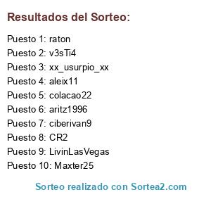 Lista de participantes: v3sTi4, xx_usurpio_xx, ciberivan9, raton, aritz1996, colacao22, LivinLasVegas, aleix11, CR2, Maxter25.