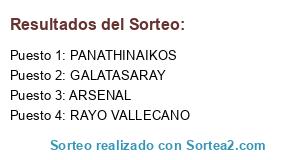 Lista de participantes: VILLARREAL, LAS PALMAS, ESPANYOL, PANATHINAIKOS, WOLFSBURG, PSV, AS ROMA, VALENCIA, STUTTGART, GALATASARAY, SEVILLA FC, FC BAYERN, RAYO VALLECANO, AC MILAN, OLYMPIAKOS, AJAX, BOR. DORTMUND, LIVERPOOL, SUNDERLAND, FIORENTINA, REAL MADRID, FC PORTO, ARSENAL, UDINESE.