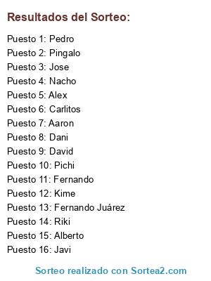 Resultados del sorteo: