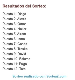 Resultados del sorteo: