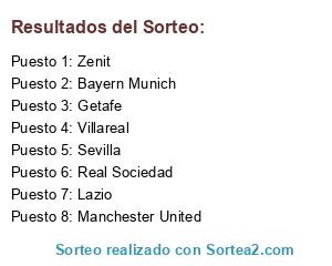 Lista de participantes: Bayern Munich, Zenit, Manchester City, Juventus, Real Sociedad, Villareal, Everton, Tottenham, Real Madrid, O.Lyon, Barcelona, Atlético de Madrid, Inter, Sevilla, Roma, Milán, Wolfsburgo, Werder Bremen, Almería, Lazio, Bayer Leverkusen, Chelsea, Schalke04, Aston Villa, Arsenal, Manchester United, Getafe, Valencia, Hercules, O.Marseilla, Oporto, Liverpool.