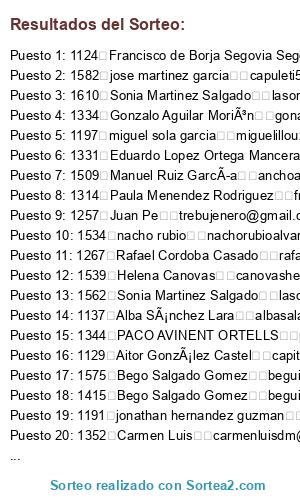 - Puesto 10: 1534 nacho rubio nachorubioalvarez@hotmail.com