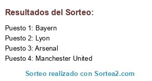 Lista de participantes: Manchester United, Bayern, Lyon, Arsenal.