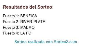 Lista de participantes: BENFICA, LA FC, RIVER PLATE, MALMO.