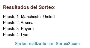 Lista de participantes: Manchester United, Arsenal, Bayern, Lyon.