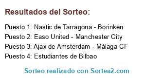 Lista de participantes: Estudiantes de Bilbao, Ajax de Amsterdam - Málaga CF, Easo United - Manchester City, Nastic de Tarragona - Borinken.