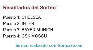 Lista de participantes: CSK MOSCU, INTER, BAYER MUNICH, CHELSEA.