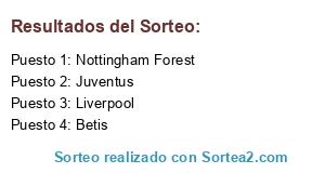 Lista de participantes: Juventus, Nottingham Forest, Betis, Liverpool.