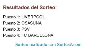 Lista de participantes: PSV, LIVERPOOL, FC BARCELONA, OSASUNA.