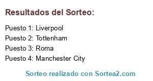 Lista de participantes: Liverpool, Manchester City, Tottenham, Roma.