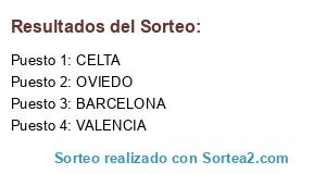 Lista de participantes: BARCELONA, CELTA, OVIEDO, VALENCIA.