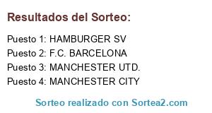 Lista de participantes: HAMBURGER SV, MANCHESTER CITY, MANCHESTER UTD., F.C. BARCELONA.