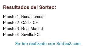Lista de participantes: Real Madrid, Cádiz CF, Sevilla FC, Boca Juniors.