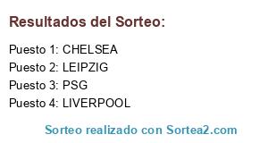 Lista de participantes: LIVERPOOL, CHELSEA, PSG, LEIPZIG.