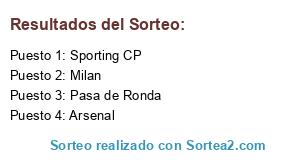 Lista de participantes: Milan, Arsenal, Sporting CP, Pasa de Ronda.