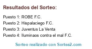 Lista de participantes: Juventus La Venta, Hispalaciego F.C., ROBE F.C., Iluminaos contra el mal F.C..