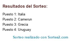 Lista de participantes: Italia, Camerun, Uruguay, Grecia.