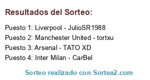 Lista de participantes: Arsenal - TATO XD, Inter Milan - CarBel, Manchester United - tortxu, Liverpool - JulioSR1988.