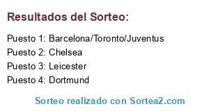 Lista de participantes: Leicester, Barcelona/Toronto/Juventus, Dortmund, Chelsea.