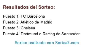 Lista de participantes: Chelsea, Dortmund o Racing de Santander, FC Barcelona, Atlético de Madrid.