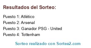 Lista de participantes: Tottenham, Atlético, Arsenal, Ganador PSG - United.