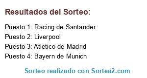 Lista de participantes: Racing de Santander, Atletico de Madrid, Bayern de Munich, Liverpool.