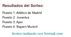 Lista de participantes: Ajax, Atlético de Madrid, Bayern Munich, Juventus.