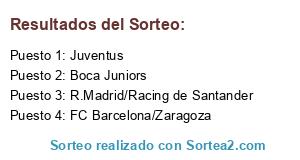 Lista de participantes: Juventus, Boca Juniors, FC Barcelona/Zaragoza, R.Madrid/Racing de Santander.