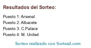 Lista de participantes: M. United, Arsenal, C.Palace, Albacete.
