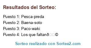 Lista de participantes: Baena-soto, Paco-waki, Pesca-preda, Los que faltan😩.