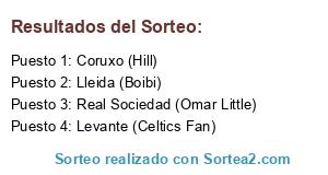 Lista de participantes: Real Sociedad (Omar Little), Coruxo (Hill), Levante (Celtics Fan), Lleida (Boibi).