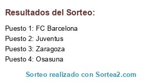 Lista de participantes: FC Barcelona, Juventus, Osasuna, Zaragoza.