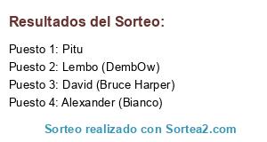 Lista de participantes: Lembo (DembOw), Alexander (Bianco), David (Bruce Harper), Pitu.