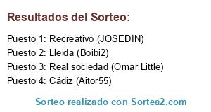 Lista de participantes: Cádiz (Aitor55), Lleida (Boibi2), Recreativo (JOSEDIN), Real sociedad (Omar Little).