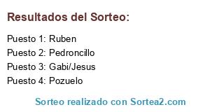 Lista de participantes: Gabi/Jesus, Pozuelo, Pedroncillo, Ruben.