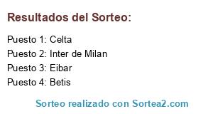 Lista de participantes: Eibar, Celta, Inter de Milan, Betis.