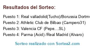 Lista de participantes: Parma (Acid) /Real Madrid (Alvaro), Athletic Club de Bilbao (Campero31), Real valladolid(Tucho)/Borussia Dortmund (Caveman), Valencia CF (Pepe....SL).